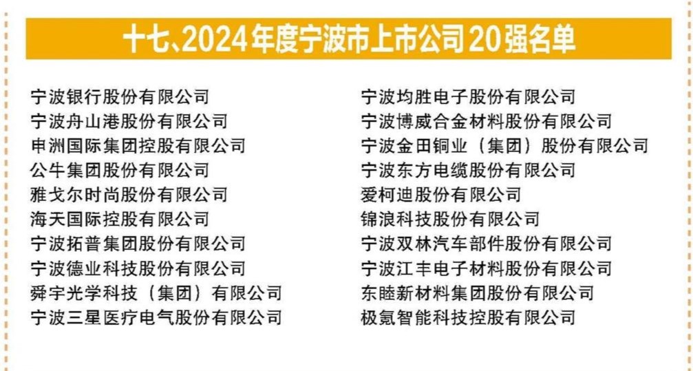此次荣登“宁波上市公司20强”,是对双林股份过往发展路径的充分肯定,也为公司未来发展注入了强劲动力。未来,双林股份将继续秉持创新驱动发展理念,紧密围绕国家产业政策导向,深耕智能制造核心技术,持续优化产业布局,为区域经济高质量发展贡献更多力量。